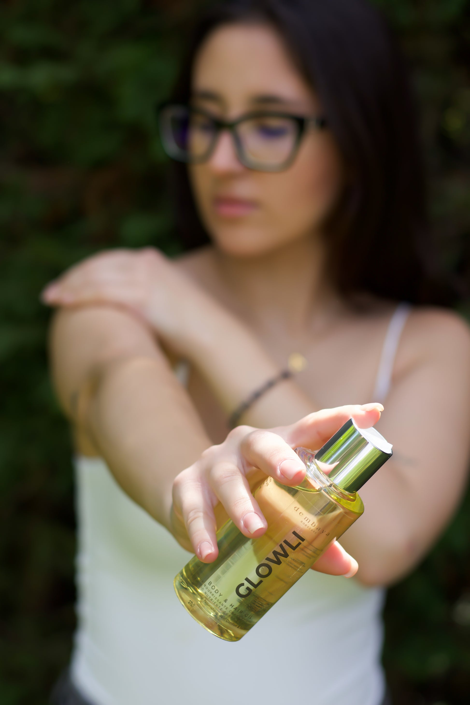 GLOWLI è un olio corpo naturale e versatile, formulato con una miscela preziosa di oli vegetali di vinaccioli, nocciolo di albicocca e mandorle dolci.